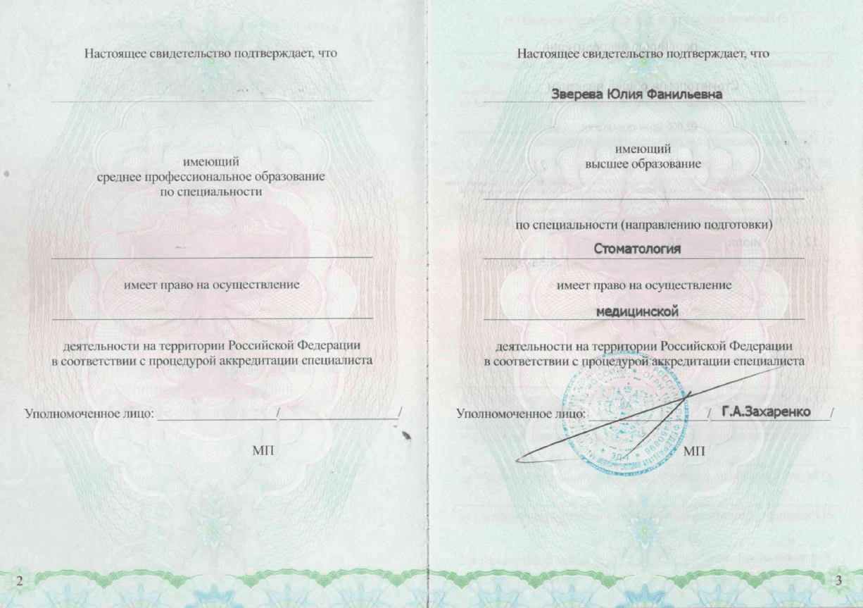 Зверева Юлия Фанильевна – это опытный врач-стоматолог ортодонт, чья профессиональная деятельность сосредоточена на безупречном выравнивании зубов и коррекции прикуса у пациентов всех возрастов. Обладая обширным клиническим опытом и глубоким пониманием современных ортодонтических технологий, доктор Зверева зарекомендовала себя как высококлассный специалист, виртуозно владеющий как классическими, так и инновационными методами лечения.